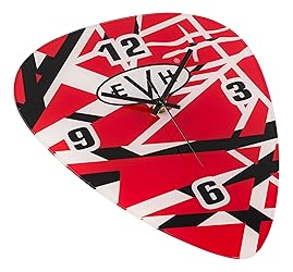 - This pick-shaped wall clock from EVH makes a cool addition to any musician's decor. Featuring the iconic red, black, and white stripe pattern that defined an era of rock history, this timepiece brings legendary style to your music room, studio, or living space. This EVH wall clock is powered by one AA battery (not included). Makes an excellent gift for musicians and rock fans of all ages. Dimensions: Length 11", Width 9", Depth 1"