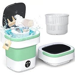 Advanced Cleaning Technology: 2026 upgraded portable washing machine combines powerful physical spinning with blue light technology to achieve an exceptional clean; This mini washing machine delivers a deep, hygienic refresh for baby clothes, intimate wear, socks, and towels, effortlessly lifting away residues in a compact, user-friendly design Portable & Space-Saving: Weighing a mere 3.6 lbs, this portable washer machine is incredibly easy to carry; Its smart folding design shrinks from 12.5x12.5x13 inches down to a slim 12.5x12.5x6 inches for storage; Tuck it under a bed, in a closet, or a cabinet, making it the perfect laundry solution for small apartments, dorms, and travel Powerful Spin, Gentle Care: This portable clothes washing machine offers three customizable timer modes (3, 5, or 10 minutes); The quick 3-minute power spin mode handles daily essentials efficiently, while all cycles provide a handwash-level gentle clean that protects delicate fabrics like silk and lingerie, keeping them in perfect shape TPE Food-Grade Material: Your family's comfort is our priority; Constructed from food-grade TPE and skin-safe silicone, this small washing machine portable provides a gentle yet thorough clean; It's perfectly suited for washing delicate items, including baby clothes, underwear, and other personal garments Effortless Compact Living: Engineered for reliability in small spaces, this portable washing machines for apartments is the ultimate compact living companion; It eliminates tedious handwashing, offering a convenient and efficient way to manage delicate laundry anywhere—from your studio apartment to your next camping trip