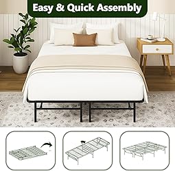 - MAKE CHANGES Queen Folding Bed Frame, Heavy Duty Metal Queen Platform with 14" Storage, Easy Assembly, No Box Spring Needed, RV & Motel Ready