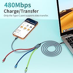 【DUAL TYPE-C PORT 4 IN 1 CHARGING CABLES】:Charge all your devices with this 4 in 1 usb c charging cable. Built-in DUAL USB-C connectors, IP and Micro USB connectors, make the phone charger simple, lightweight and portable.Perfect for home, travel,business trips,dock or sharing with friends. 【4 IN 1 CHARGING CABLE FOR MULTIPLE DEVICES】:Our latest 4 in one usb c multi charging cable features four ports.Each port functions independently, allowing you to charge four devices simultaneously without any interference. Devices are charged at their optimal speeds. Unlike traditional single USB charger cords, this Type C Multiple Charger Cable quadruples charging efficiency, saving you precious time and making your travel and office life much more convenient. 【DURABLE MATERIALS】:Powerful military fiber, the most flexible, strongest material, increases tension by 200%.Special strain relief design withstands 20,000+ bending tests,MPATIBY dual charger cord resulting in a longer lifespan compared to ordinary charger cord, this usbc charging cable for multiple devices can meet your long-term daily use. 【5FT PERFECT DESIGN DUAL USB C CABLE CORD】:5 ft universal USB C multi charging cable has a built-in Upgraded smart chip, which intelligently regulates the current,provides comprehensive protection to devices battery and adapters.The Multi-port connector lets you enjoy videos or games while lying on the couch. This usb c to multiple connectors for multiple devices can be used in different occasions such as bedroom, office or car. 【UNIVERSAL COMPATIBILITY】:2025 Portable travel essentials travel chargers cable.4 in 1 USB C Splitter Multi Charging Cable works with All USB Type-C/micro USB/ Lightning devices.Compatible with iPhone 17 16 15 14 13 12 11/SE/X/8/7/6/5 Series, Pad and other Android devices for most mobile phone charging.This product supports bulk purchasing, making it ideal for businesses and large orders. Since 2008, MPATIBY has been focusing on charging cable innovation and has established a dedicated team dedicated to charging cable research and development. 17 years later, we have the largest charging cable source factory in China. Trust us, choose us, and surprises will follow. Specification Note: Final power distribution is subject to device-specific power negotiation and may vary based on connected load. Concurrent usage across multiple ports might impact individual charging performance. Designed for low-to-moderate power devices and standard charging applications. This CABLE is not a fast-charging cable.