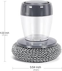 - Features: 1. Replaceable cleaning brush. 2. Press one button to start. 3. Easy to operate. 4. Equipped with replaceable brushes. 5. The effect is remarkable. 6. Many specifications and options. Specifications: Name: Comfort Grip Soap Dispensing Kitchen Scrub Material: ABS+PET Color: Gray Weight: 86g Size: 24*16cm/9.5*6.3in Remarks: (1) Please allow slight size differences due to different manual measurements. (2) Actual color may be slightly different from the picture due to different monitors and lighting effects. (3) If you encounter any problems when purchasing or using the product, please feel free to contact us and we will do our best to solve it for you.