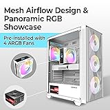 RAIDMAX V217 ATX Mid Tower Mesh Gaming PC Case, High Airflow Front Panel Design, 4X 120mm ARGB Fans Pre-Installed, Tempered Glass Side Panel, Supports 305mm GPU / 240mm Radiator (White Bundle)
