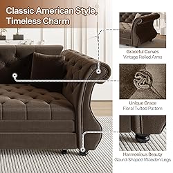 Tabaray 83.8'' Sleeper Sofa Bed Queen, Convertible Pull Out Couch, Chesterfield Futon Sofa Bed with Flower-Tuffed Back, Velvet Daybed, 2 Pillows, Loveseat Couches for Living Room, Small Spaces, Brown