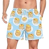 CUPADA Men's Board Shorts Mini Pie Stack Pattern Blue Swim Trunks with Compression Liner Quick Dry Swimwear Running