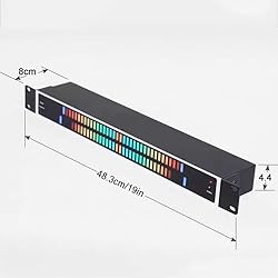 LED Music Spectrum Indicator: Experience music like never before with this stereo audio VU meter that features 96 vibrant full-color LEDs, visually representing your sound and music dynamics, perfectly compatible with all audio equipment. Spectrum Mode: Enjoy a colorful music level meter with eight customizable modes, each offering dynamic visual patterns and five levels of brightness to suit your ambiance. Convenient Connectivity: Designed with two sets of analogue input ports and two sets of analogue output ports on the rear, this unit ensures effortless connections to other devices without sacrificing sound quality. Visual Music: Monitor real-time music level status effortlessly, as every minute sound change is displayed clearly. The bouncing LED lights enhance the aesthetic of any audio setup. Mounting Options: This device is a standard 19-inch rack mount that supports both desktop and rack installation. Its dynamic display will bring an added vibrancy to your recording studio's atmosphere.