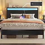 【Storage Headboard with LED Lights】The headboard, crafted from wood and a metal frame, offers excellent support. It is topped with stylish LED lights that you can customize in terms of color, brightness, and mode. You can also set a timer according to your preferences using either a mobile app or a remote control. 【Built-in Charging Station】The queen bed frame features a recessed charging station with 2 standard outlets, 1 USB port, and 1 Type-C port, catering to various charging needs and keeping your devices connected. You can charge your electronic devices without leaving the comfort of your bed. 【Under-Bed Storage Space】The queen bed frame offers 11.6 inches of spacious under-bed storage for suitcases and other items, allowing easy access for sweepers or vacuum cleaners, keeping your bedroom organized and tidy. It features 12 heavy-duty metal slats with a load-bearing capacity of up to 800 pounds. 【Noise-Free Design】Each slat is equipped with a foam strip to effectively eliminate squeak and noise, and ensure a quiet sleeping environment. The High Footboard prevents the mattress from sliding. Our retro bed frame can match any color scheme in your room, elevating the overall aesthetics of your bedroom. 【Three Colors Available】Three colors are specially designed for you to choose from, classic style black, vintage style brown and modern style grey, which can be adapted to various room styles.