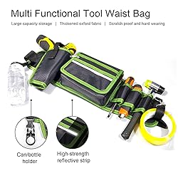 Multi Functional: This tool belt features a spacious design, convenient to store electric drill, hammer, wrench, screwdriver, etc., comes with a bottle holder for water bottle carrying, designed with reflective strip for night work. Premium Material: The tool belt organizer is made of high density 1680D Oxford cloth with thick padding, providing premium puncture, abrasion, and scratch proofing, easy to clean, ensuring durability. Adjustable Fit: The tool pouch is equipped with adjustable belt, ensuring a comfortable and stable wearing experience. Reinforced stitching and buckle design ensure durability. Exquisite Craftsmanship: The tool belt pouch adopts thick and hard wearing edging and fine stitching, with tight and uniform seams. The overall structure is sturdy and beautiful, ensuring long service life. Wide Application: This tool belt is suitable for maintenance workers, electricians, installers, renovators, plumbers, and various other professions, catering to a wide range of needs.