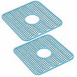 Dependable Industries Inc. Essentials 2 Pack Plastic Sink Protector Mat with Center Drain Cutout Protect Sink and Glasses and Dishes from Scratches and Breaks 12" x 11" Off White (Light Blue)
