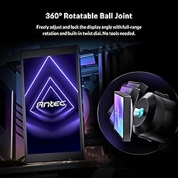 Customizable IPS LCD Screen – Features a vivid 5" IPS display with 1280x720 resolution and 300 nits brightness. Fully customizable via Antec software to show real-time CPU/GPU temperatures, GIFs, or personalized images. 9th Gen Asetek Cooling Platform–Supports overclocking up to 400W TDP with a redesigned pump and impeller that improve thermal efficiency, reduce vibration, and enable dynamic temperature control. Quiet Pump Acoustics –Engineered for low-resonance operation and delivers sub-14 dBA acoustics at 2800 RPM. 360° Rotatable Ball Joint–Freely adjust and lock the display angle with full-rangemrotation and built-in twist dial. RGB Backglow System–An addressable RGB panel behind the display delivers customizable ambient lighting across the pump block and surrounding components.
