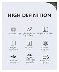 - Product Name: Smart Inkjet Printer Printing distance: 2-5mm Maximum resolution: 300dp Print speed: 30ppm Maximum paper size: A4 Type: Inkjet Printer Interface type: USB Screen size: 4.3 inches Machine weight: 0.65kg Language selection: multiple languages can be customized Printing height: 2-12.7mm adjustable Machine size: 130*100*244mm Printing accuracy: 600DPI Cartridge capacity: 42ml Printing speed: 30m/min Information storage: built-in storage External interface: charging, USB, photoelectric interface Ink cartridge color: black, white, yellow, green, blue, red remind: 1. Please keep the power off before installing the ink cartridge 2. In order to achieve a good printing effect, it is recommended to spray thinner on the nozzle before use 3. It is recommended to take out the battery and charge it separately, usually 2-3 hours 4. After use, please take out the ink cartridge and install the clip in the off state Rated voltage (appliances or chargers): AC110-240/50HZ;