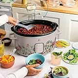 Beautiful 6 Quart Programmable Slow Cooker with Digital Countdown Timer, Auto Warm & Lid Holder, Easy Clean Ceramic Pot (Wildflower Porcini Taupe)