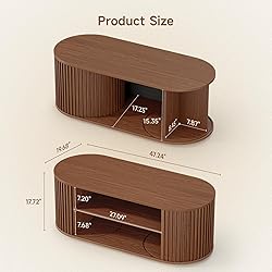 Stylish Coffee Table: Featuring a 47" large tabletop and unique vertical stripe sliding door, this coffee table offers ample surface space for daily use while elevating your home decor. The modern sliding door design adds a sleek, high-end look to any living room, making it both functional and visually appealing Multi Functional & Transformable Use:Designed for versatile living, this multi-purpose coffee table easily adapts to different needs. It serves as a practical center table for your living room, a stylish accent piece for your home office, and can be rearranged to fit various layouts, perfect for multi-functional spaces and modern lifestyles Ample Storage Space: Built with hidden storage and an adjustable internal shelf, this table helps you organize magazines, remotes, blankets, and everyday essentials neatly. The customizable shelf allows you to adjust space according to your storage needs, keeping your living area clean and clutter-free Sturdy Construction: Supported by a heavy-duty round base, this coffee table delivers exceptional stability and durability for daily use. The engineered wood frame ensures long-lasting strength without wobbling, making it safe and reliable for families, living rooms, and high-traffic areas Easy to Assemble: The coffee table is easy to install, saving a lot of steps. And each package of components comes with clear and simple instructions and all the materials needed, ensuring that you can assemble it Color Variation Note: Due to varying lighting conditions, there may be color differences between the actual product and the photo