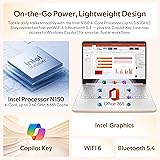 【14'' HD Anti-Glare Display】Immerse yourself in a world of enriched productivity and entertainment, courtesy of the captivating clarity and brilliance offered by this display, promising to enhance your overall enjoyment. 【Intel Processor N150】Step into a realm where potency and effectiveness reign supreme, where an ultra-low-voltage infrastructure maximizes energy utilization. 【4GB DDR4 RAM】Provides responsive performance and smooth multitasking for efficient daily productivity.【1.12TB Storage】128GB UFS + 1TB Docking Station Set. Spacious storage with fast, reliable access for everyday computing needs. 【AI Copilot】Get intelligent assistance for everyday tasks, helping you work smarter, faster, and more efficiently.【1 Year Office 365】Get productive from day one with a one-year subscription to Office 365, offering essential tools for work and productivity on your new laptop. 【Windows 11】【Dimensions & Weight】12.76 x 8.86 x 0.71 inches, 3.24 lbs.【Ports】1x USB Type-C, 2x USB Type-A, 1x Headphone/microphone combo, 1x Media card reader, 1x HDMI 1.4b, 1x AC Smart pin. Wi-Fi 6, Bluetooth 5.4.【Bonus Docking Station Set】1x 7-in-1 Docking Station with 1TB Storage, 1x 32GB MicroSD Card with Adapter, 1x Type-C Data Cable, 1x 3-in-1 Charging Cable, 1x Suede Cleaning Cloth.
