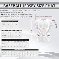 First choose your preferred style and size, then click "Customize Now". Enter the name, number, or team information you would like on the jersey. You can also request additional patches or special customization to make your jersey unique. Breathable Material Polyester jersey shirt. High Flexibility, Moisture Wicking Baseball jerseys for men, Quick-Drying Performance.Men's Size S-7XL, Women's Size: S-4XL, Pre-school Size: S-L,Boy's Size S-XL. All sizes are US size. The name and number are professionally stitched for long-lasting durability. The embroidery will not fade, peel, or crack, giving your jersey a classic professional look. Great for baseball teams, practice, games, school events, fan wear, or casual street style. Suitable for men, women, and youth. A perfect custom gift for teammates, friends, and family. Ideal for birthdays, team events, tournaments, and sports fans.