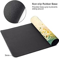 【LARGE MOUSE PAD】:The large mouse pad provides plenty of space for gaming or office work, adds color, style and comfort to your work area, always keeping your desk protected 【NON-SLIP RUBBER BASE】:Soft and dense non-slip rubber base keeps this desk pad firmly in place, the stability is very good and provides heavy grip preventing the mouse pad from sliding or moving 【WATER RESISTANT & EASY TO CLEAN】:An anti-spill coating makes liquids slide right off the surface, it can resist accidents, so liquids can be easily cleaned with a damp cloth 【SEWED EDGES】:It is a sturdy anti-fray stitching that surrounds the mouse pad to increase practicality and aesthetics 【APPLICATION】: The mouse pad is a good choice for gaming, office and home use. At the same time, it adds an artistic touch to your life, making it the best choice as a gift for your children, colleagues, family and friends