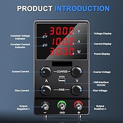 - Application: 1. Charge the battery. 2. Car DVD, car . 3. Product aging, such as resistors, capacitors, relays, DC motors, LEDs, etc. 4. Laboratory, factory, maintenance power supply. 5. Everything else needs a DC regulated power supply. Your Package Includes 1 * DC power supply Output Current : 0-5A Model Number : SPS3010 30V