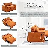 Trygoal Sofa Bed, Pull Out Couch with Side Pockets, 3 in 1 Velvet Loveseat Sleeper Sofas Beds with USB Ports, Sofa Bed Couch with Adjustable Backrest for Living Room, Bedroom, Apartment, Orange