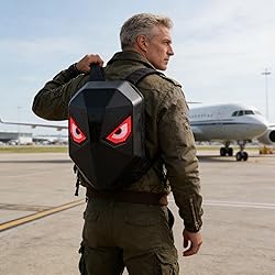 [Versatile Stylish Accessory] Perfect for biking commuting travel or special events this programmable led backpack merges functionality with futuristic flair. its eye catching design transforms it into more than just storage making it an unforgettable gift choice for holidays birthdays or any occasion that calls for something uniquely practical and cool. [Smart Phone Control] Take full command of your led cycling backpack's dynamic display through your smartphone. easily edit unique patterns messages or graphics on its high resolution 40x48 screen with p2 spacing. the usb powered connectivity offers flexible operation though please note the power supply isn't included due to shipping safety regulations. [Durable Comfortable Design] Constructed from premium abs pc and 1680pvc materials this led motorcycle backpack delivers exceptional impact and abrasion resistance. its aerodynamic construction combines with adjustable shoulder straps breathable sponge padding and a secure chest buckle to ensure maximum comfort and safety during use. [Mesmerizing Led Display] This cutting 3d hard riding backpack features a stunning led eye design that instantly grabs attention. the built in 40x48 full color dot screen allows complete customization through the mobile app letting you display personalized text animations or images for a true cinematic effect that makes you stand out in any crowd. [Spacious Organized Storage] Designed with practicality in mind this motorcycle backpack measures 18.9x14.17x6.89 inches providing generous storage capacity. the main compartment securely holds laptops while multiple inner pockets neatly organize essentials like cosmetics tissues keys textbooks mobile phones umbrellas and various sports equipment.