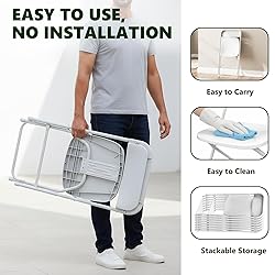 HEAVY-DUTY & DURABILITY: The folding chair constructed from high-quality, robust materials, it effortlessly supports up to 350lbs significant weight, a truly heavy duty folding chair choice. Folding chairs all-weather design is resistant to moisture and sun exposure prevents water pooling, ensuring plastic chairs remains pristine after use in the rain, at the beach, or in the garden ERGONOMIC DESIGN&COMFORT: Outdoor folding chair ergonomic design that provides optimal support and reduces fatigue. Folding chairs for outside is secured with integrated anti-skid rubber feet that grip firmly to various surfaces like grass, concrete, tile, and decking. This prevents unwanted slips and slides, ensuring stable and secure whether indoors or outdoors FOLDABLE & LIGHTWEIGHT: The plastic folding chairs combines a sturdy metal frame with a lightweight and space-saving form factor. Outdoor chairs with a simple, quick-folding mechanism, collapses in seconds into a slim, flat profile that is effortlessly portable and easy to store. Tuck it away in a closet, slide it under a bed, stand it in a narrow gap, or carry it in your car trunk STYLISH & VERSATILITY: Designed to be as stylish as it is practical, this foldable chair features a sleek look that fits seamlessly into any setting. Its aesthetic versatility makes it suitable for a wide range of activities—from camping and to outdoor concerts, garden parties, wedding,office,or as extra seating for guests at home. Suitable for various occasions both indoor and outdoor. No assembly required EASY TO CLEAN: Folding chairs measure 17.7" W x 19.3" D x 31.7" H open with no assembly required,and they can be wiped down with a damp cloth for easy cleaning as needed