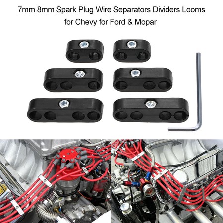 • 12pc Engine Spark Plug Wire Separator Divider & 8pc Spark Plug Wire Boots Protector Heat Sheild Sleeve 8mm 9mm 10mm Spark Plug Wire Clamp Holder Aluminum Alloy Ignition Wire Divider8 Pcs spark plug wire heat shield fits most 90 degree, 45 degree and straight spark plug boots, 12 Pcs Engine Spark Plug Wire Separators for 8mm 9mm 10mm spark wires.