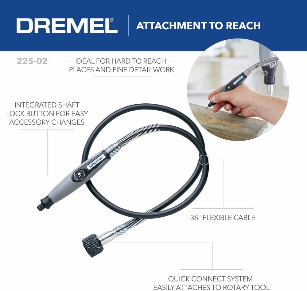 Accesorio para Herramienta Giratoria Dremel Flex Shaft con Grip de Confort y Cable Largo de 36” - Grabadora, Pulidora y Mini Lijadora- Ideal para Grabado Detallado en Metal, Tallado en Madera y Pulido de Joyería, 225-02