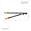 LONG-LASTING AND RELIABLE: Tree lopper with fully hardened bypass-style steel blade includes a low-friction coating for smoother cuts with less gumming and improved rust resistance; Fiskars pruners, tree trimmers, and gardening tools are made to last