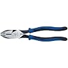 Klein Tools J2000-9NE Side Cutter Linemans Pliers, Made in USA, High Leverage 9-Inch Pliers Cut ACSR, Screws, Nails, Wire