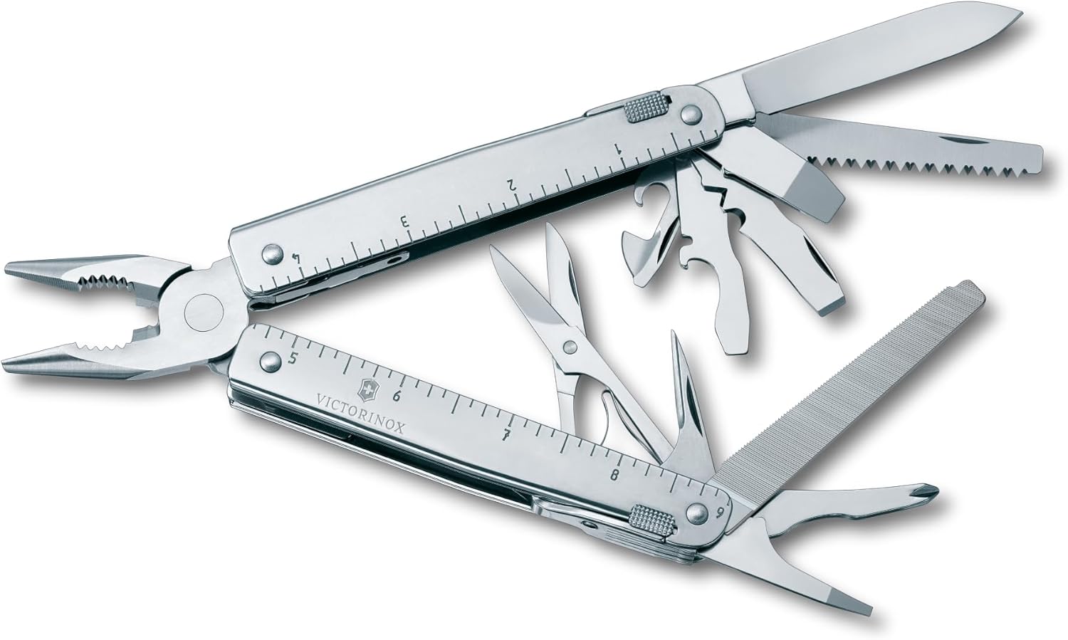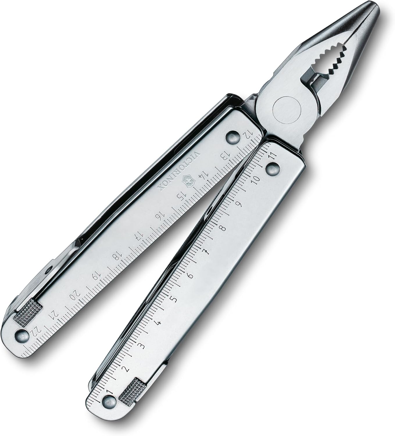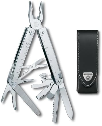 Victorinox Swiss Tool X Swiss Army Knife, 26 Function Swiss Made Multitool with Large Blade, Pliers and Wire Cutter - Silver with Leather Pouch