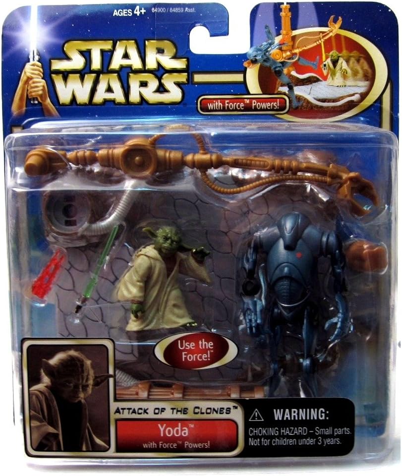 Star Wars 3.75 inch-scale action figure. Yoda with Force Powers! The oldest member of the Jedi Council, Yoda is a powerful Jedi with enormous powers. Engaged in battle against a formidable and deadly Super Battle Droid, Yoda reveals his superior skill in the Force as well as his dexterity and fighting prowess