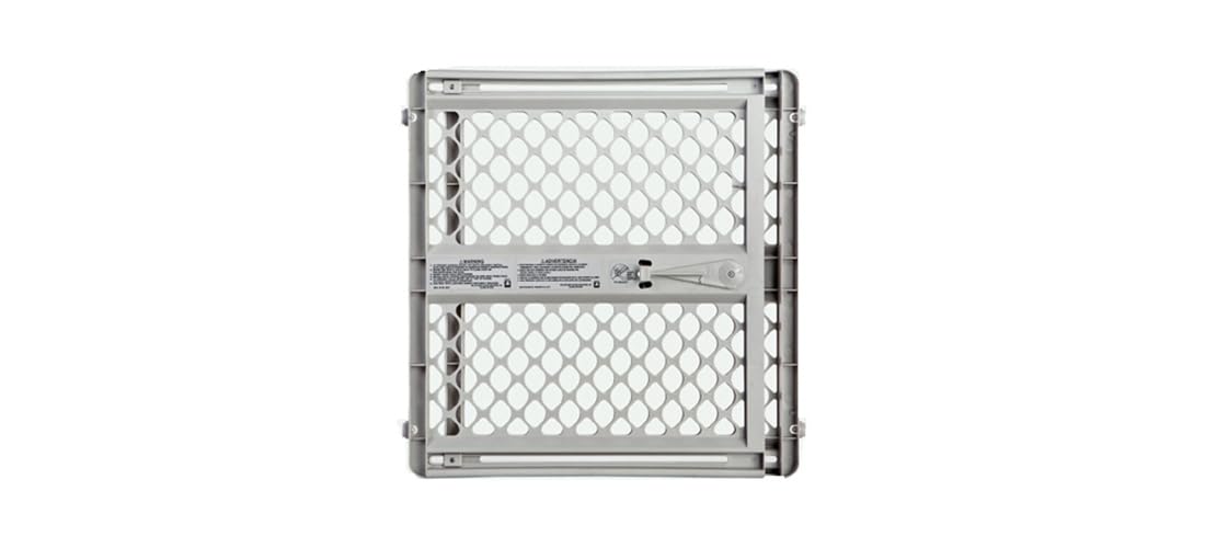 [Stylish and Dependable]: Comes in an appealing gray finish and fits seamlessly in any of your standard openings. The durable, American-made plastic gate is sturdy and hard to climb! Perfect as a puppy gate or cat gate for doorway use.
