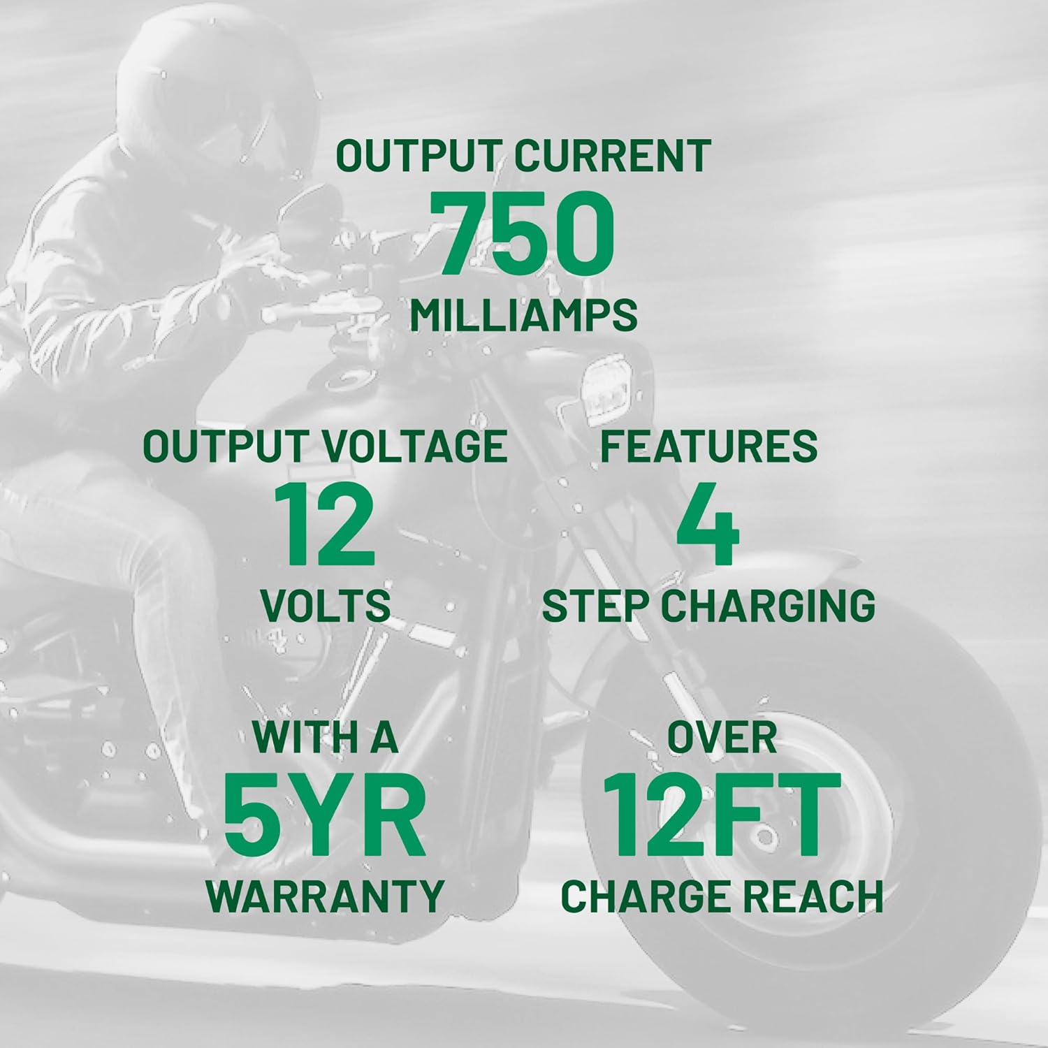 Incluye: Cargador de batería 12V, 750mA y mantenedor de batería con cable de salida de 12 pies, arnés de terminales con anillo fundido para baterías de difícil acceso y cables de clip de aligator, garantía de 5 años y soporte al cliente de por vida
