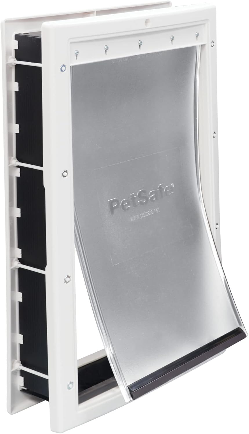 PetSafe Plastic Pet Door - Gives Your Pet Easy Outdoor Access - Durable Plastic Frame - Paintable White Frame to Match Home Decor - Snap-On Closing Panel for Safety - Simple DIY Installation - Large