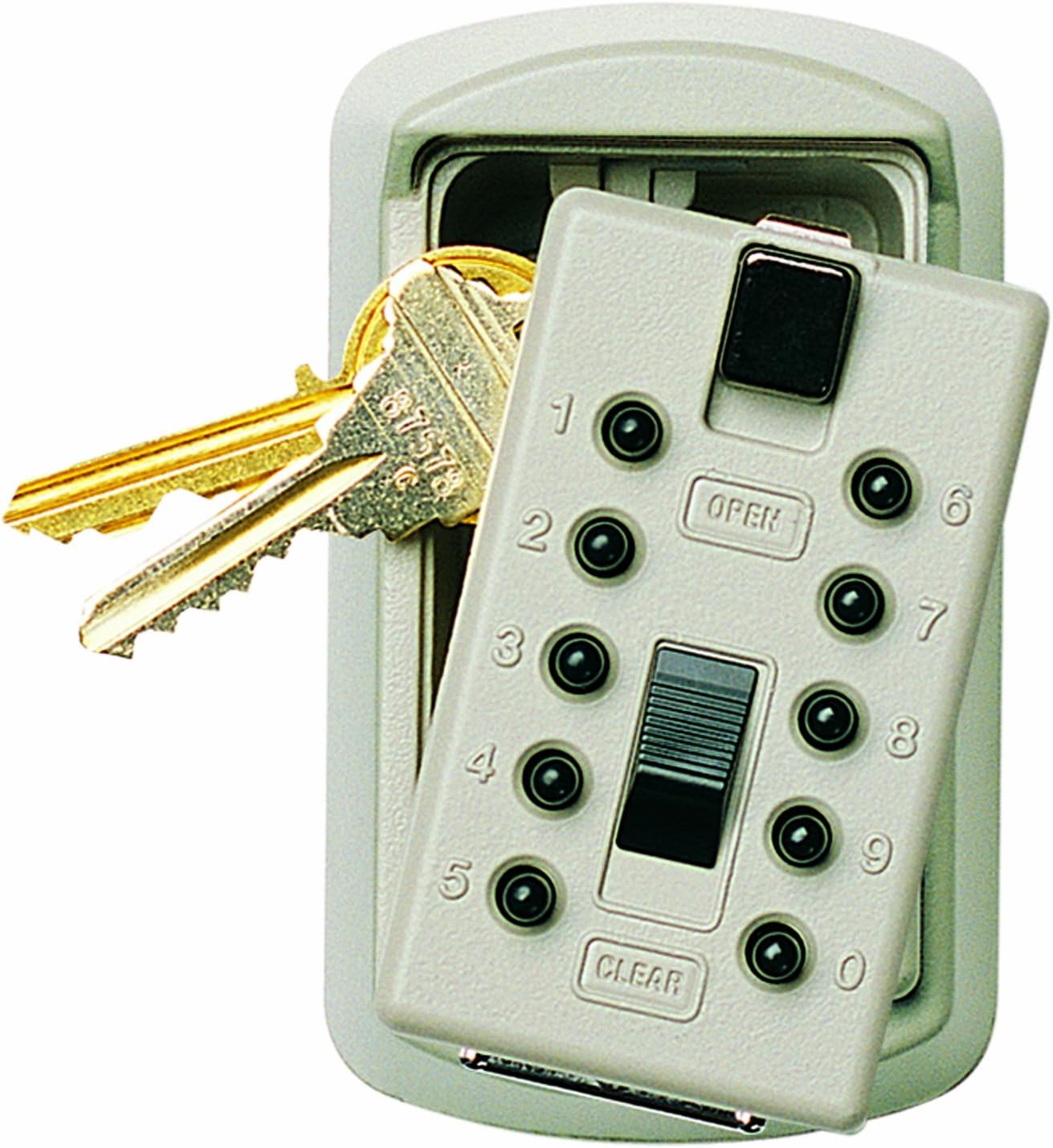 The key lock safe has easy-to-use push-button combination with over 1,000 personalized combos to chose from