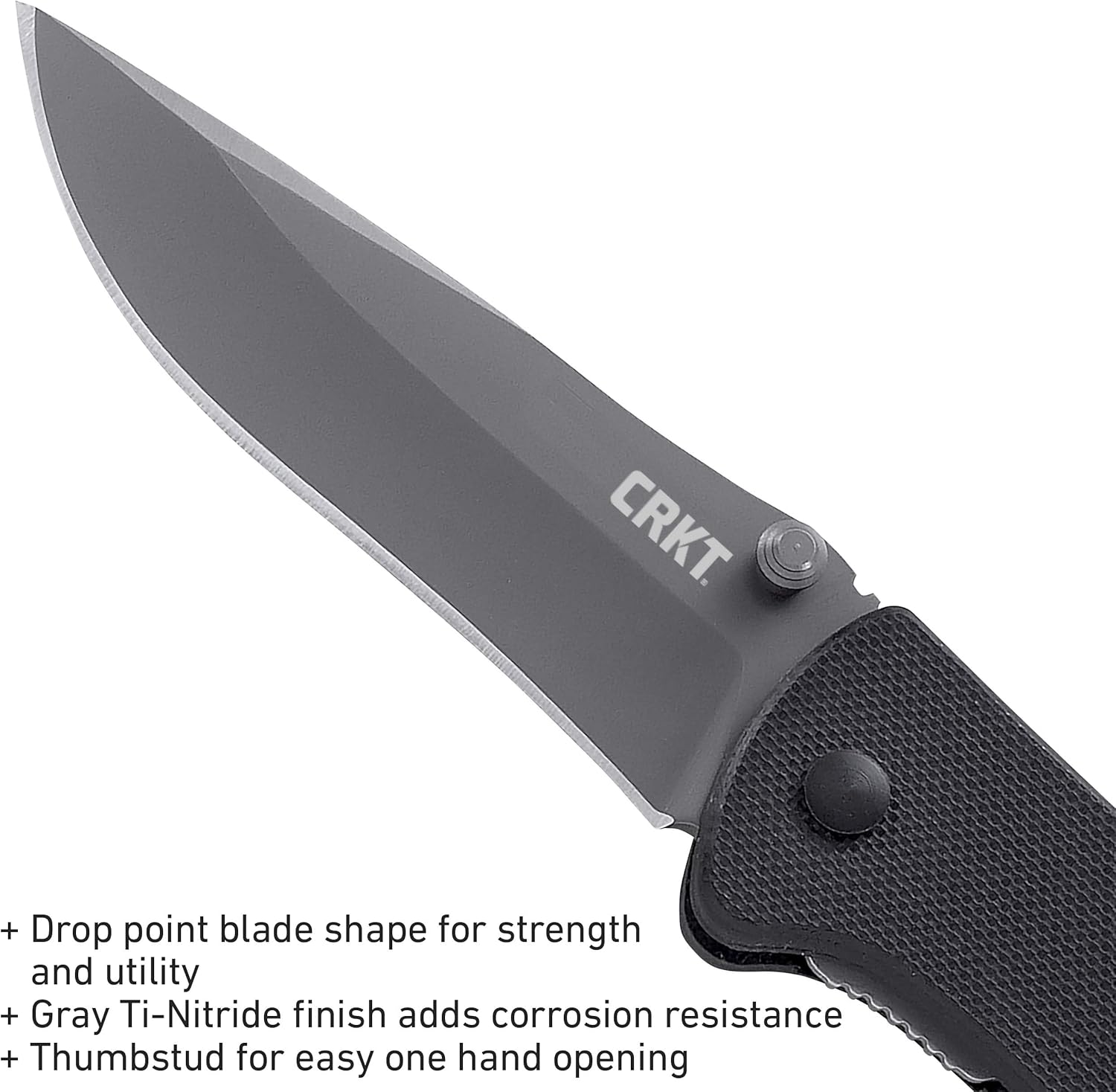 Navaja de bolsillo plegable CRKT Drifter EDC: transporte diario, hoja de nitruro de titanio gris, apertura de perno para el pulgar, mango G10 negro, clip de bolsillo 6450K