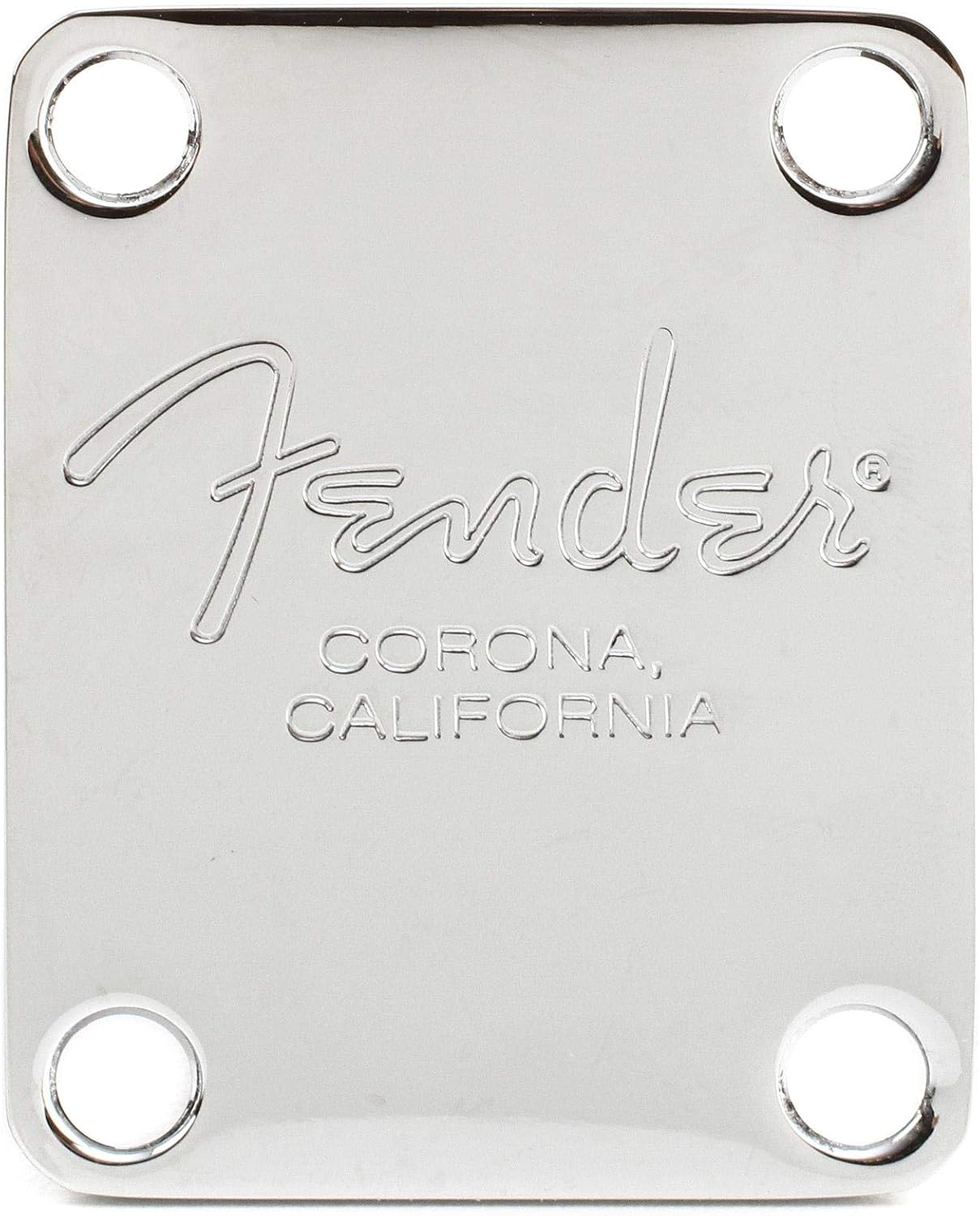 Placa de mástil estampada con la inscripción «Fender Corona California», para su uso en la mayoría de los bajos Fender mediante montaje en cuello de cuatro tornillos sin ajuste de microinclinación. Tornillos de montaje incluidos.