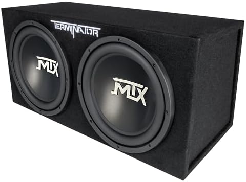 MTX Dual 12-Inch Subwoofers with Loaded Enclosure, 1200W Max Power, 400W RMS, Terminator - Car Audio Subwoofer and Speaker System with Deep Bass Sound