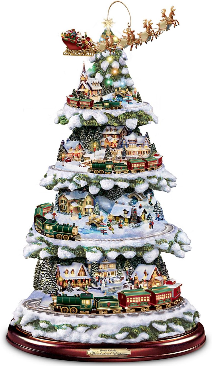 Árbol de Navidad de mesa animado de Thomas Kinkade con Train: Wonderland Express de The Bradford Exchange