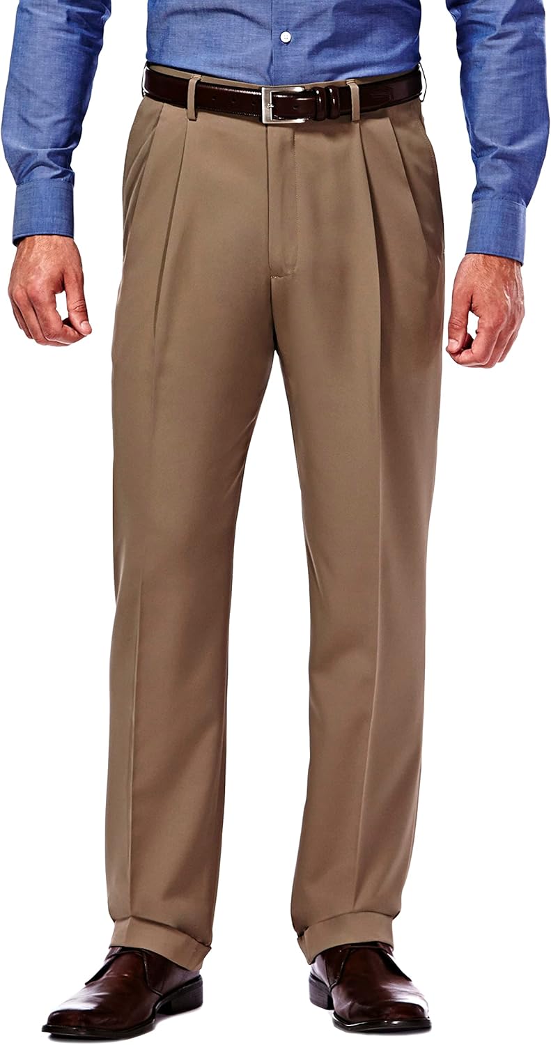Pantalón de vestir Haggar Mynx de gabardina oculta y expandible para hombre, corte clásico, plisado en la parte delantera