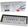 Includes: Lemon Yellow Hue, Azo Yellow Medium, Naphthol Red Light, Permanent Alizarin Crimson, Ultramarine Blue, Phthalo Blue (Red Shade), Phthalo Green (Blue Shade), Olive Green, Yellow Ochre, Raw Umber, Mars Black, Titanium White.