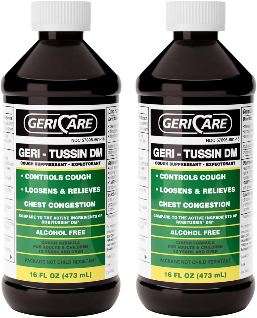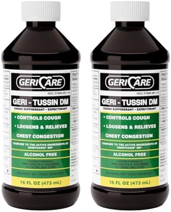 GeriCare Geri-Tussin DM Liquid Cold Cough Syrup 2-in-1 Maximum Strength Cough Suppressant Dextromethorphan & Expectorant Guaifenesin| Chest Decongestant|16 Fl Oz (2 Pack)