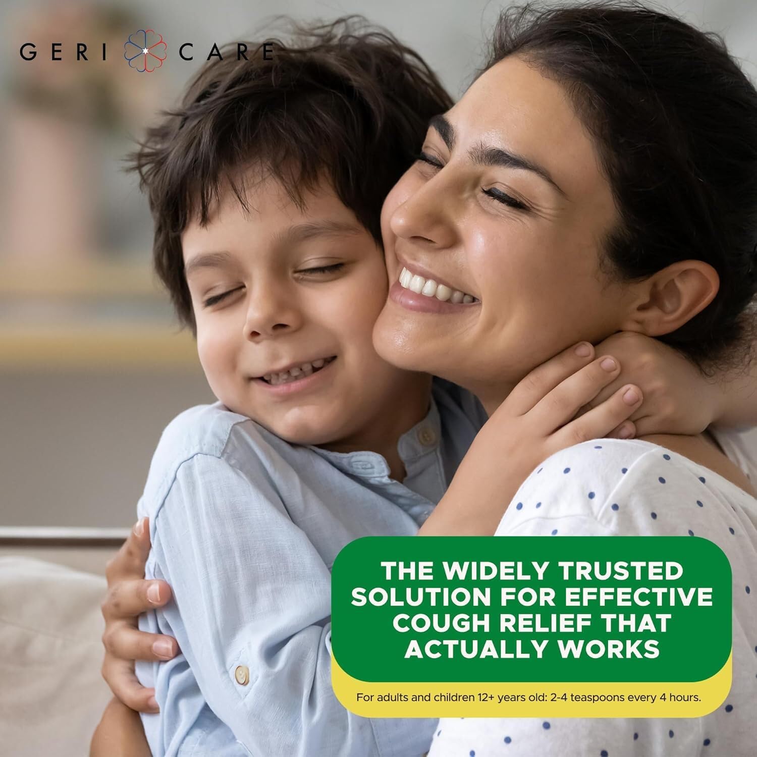 DUAL-ACTION FORMULA FOR QUICK COUGH RELIEF: The Geri-Tussin DM cough syrup combines the cough suppressant Dextromethorphan HBr and the expectorant Guaifenesin for comprehensive cough relief, allowing you to feel better sooner. By loosening up mucus in the air passages, it makes it way easier to cough up phlegm and decongest your chest for a speedy recovery.