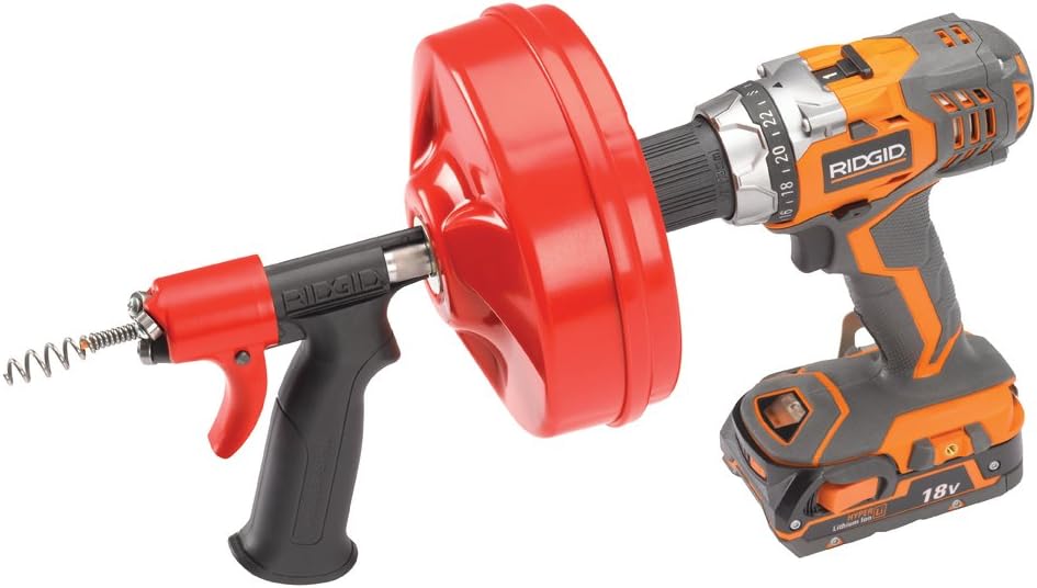 Ridgid GIDDS-813340 41408 Limpiador de desagües Power Spin con AUTOALIMENTACIÓN, cable desatascador Maxcore y taladro de globo para eliminar obstrucciones de desagües