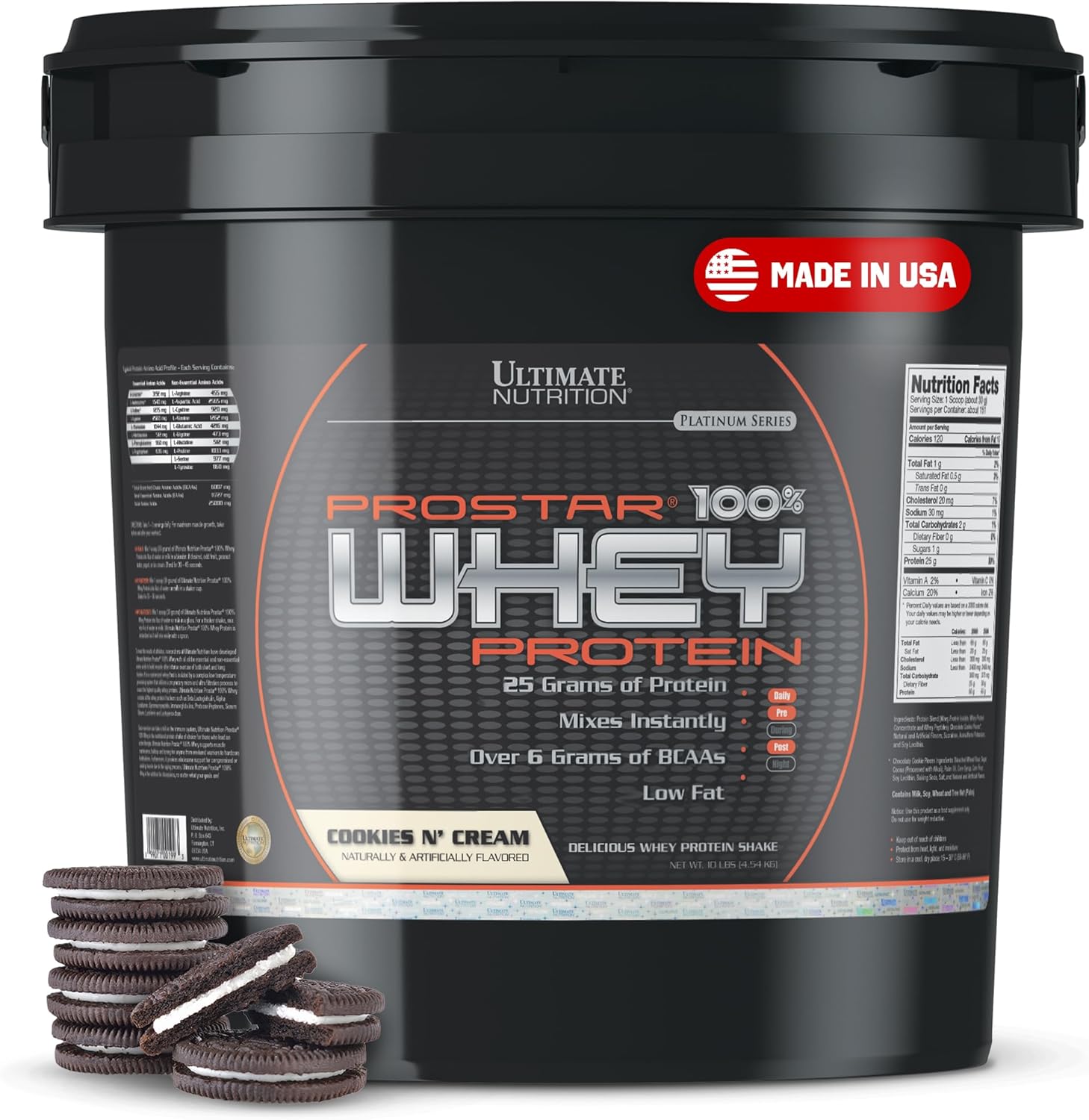 Ultimate Nutrition Prostar Whey Protein Powder Isolate, Cookies N Cream - Bajo Carboidrato, Alto Proteína Polvo para Batidos para Ganar Músculo y Recuperación - Bajo Sodio, Bajo Grasa y Apto para Keto - 10 libras