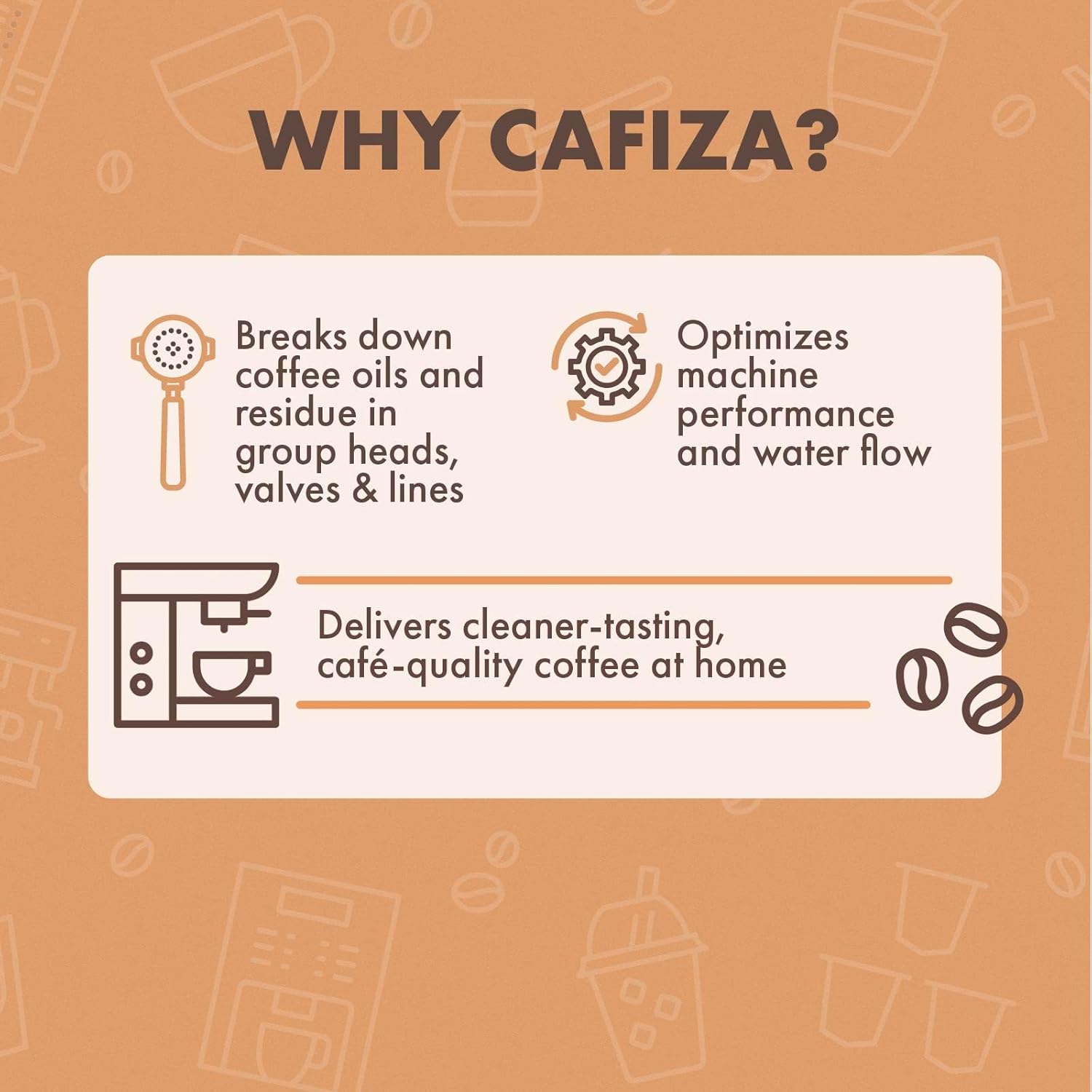 El limpiador en polvo para máquinas de café espresso Cafiza es una parte integral de la rutina de mantenimiento diario de las máquinas de café espresso. Formulado específicamente para un uso eficaz en el proceso de limpieza con retrolavado, Cafiza está diseñado para combinar la máxima solubilidad y poder de limpieza con una fácil enjuagabilidad. Se recomienda el uso de Cafiza con una amplia gama de máquinas de café espresso tradicionales y cuenta con la certificación NSF para garantizar su compatibilidad y seguridad con los metales.
