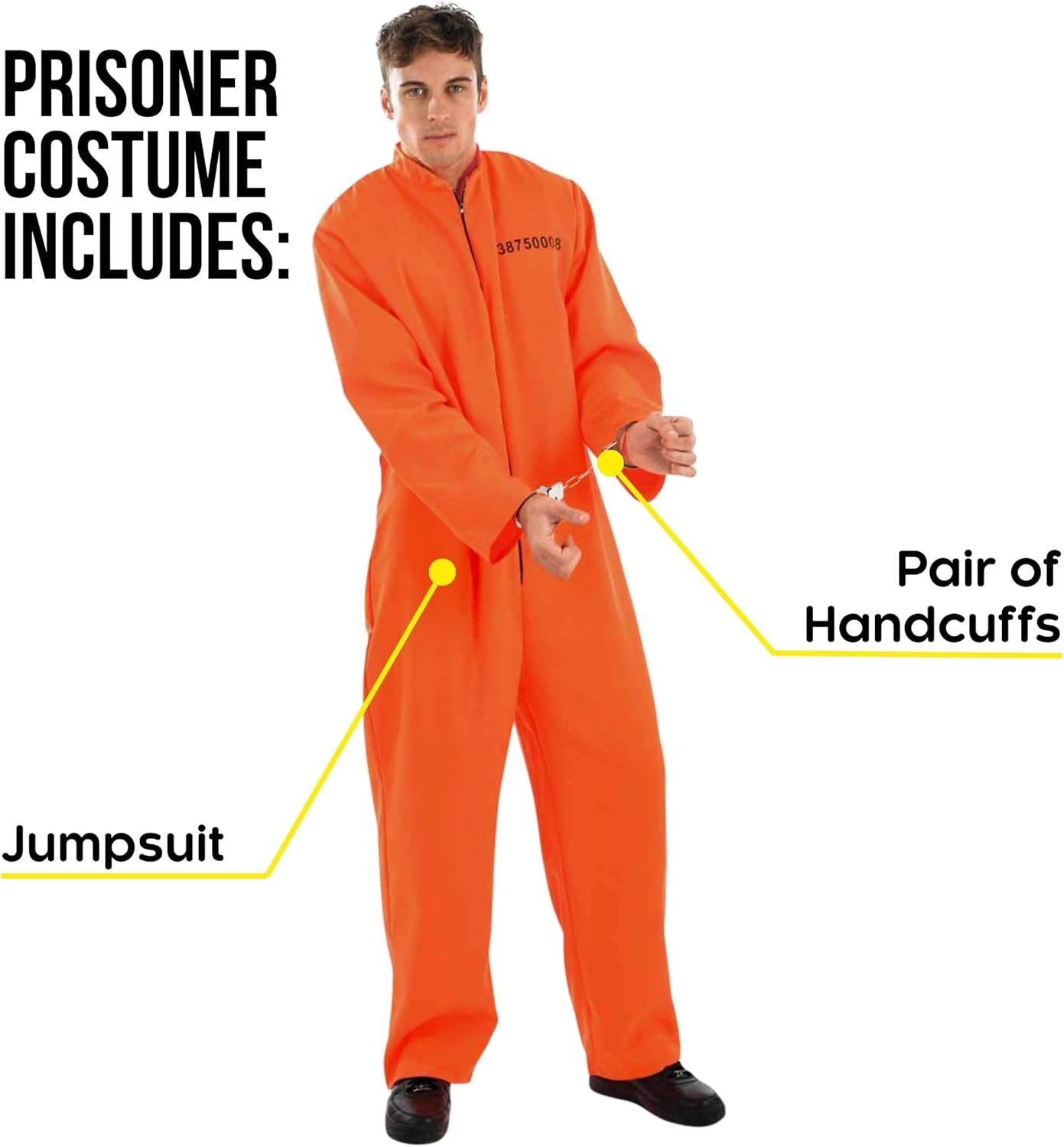 disfraz de prisionero para hombre de Fun Shack, mono de recluso de cárcel naranja, traje de prisión para adultos para Halloween o fiestas de disfraces
