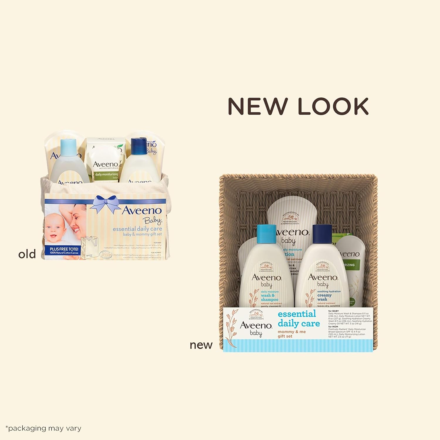 Set de regalo Aveeno Baby Essential Daily Care para el cuidado de la piel para bebés y mamás con 7 artículos diseñados para nutrir a los bebés y mimar a las madres con lociones que contienen avena coloidal natural y productos de baño que contienen extracto de avena natural
