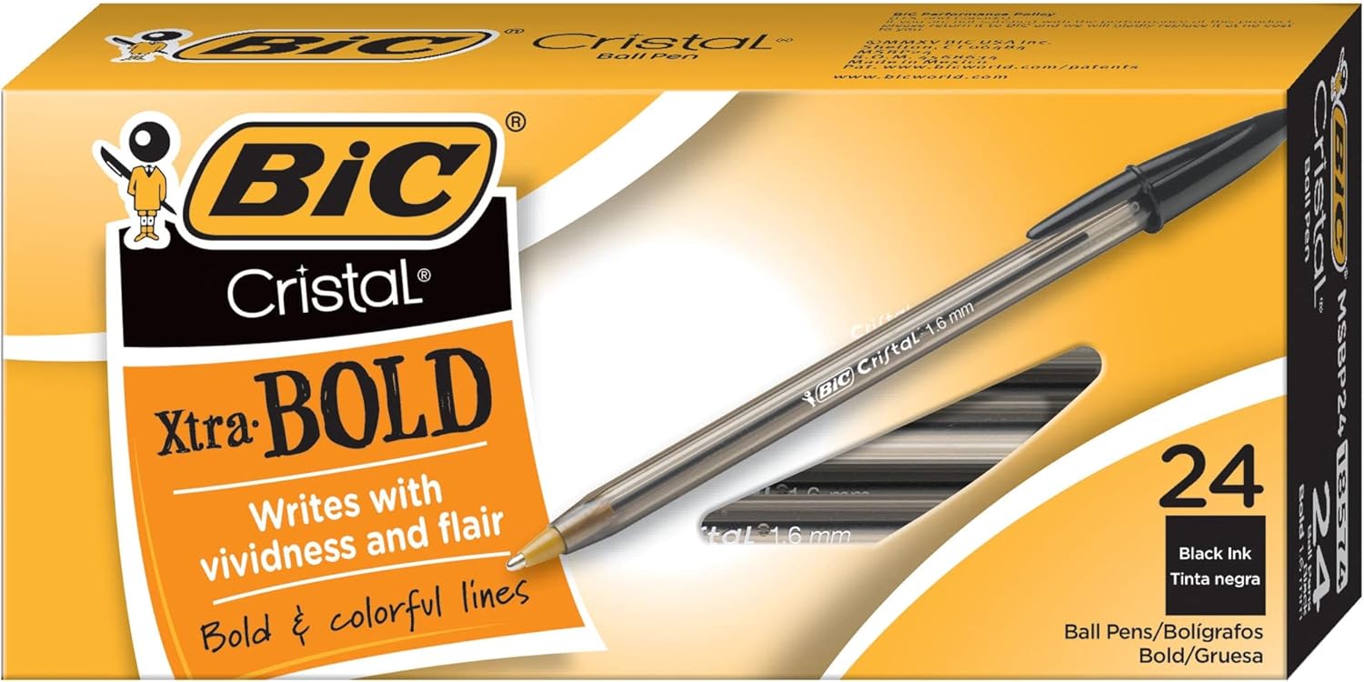 BIC Cristal Xtra Bold Ballpoint Pens, Bold Point (1.6mm) For Vivid And Dramatic Lines, Black Ink, 24-Count Pack, Perfect Ink Pens