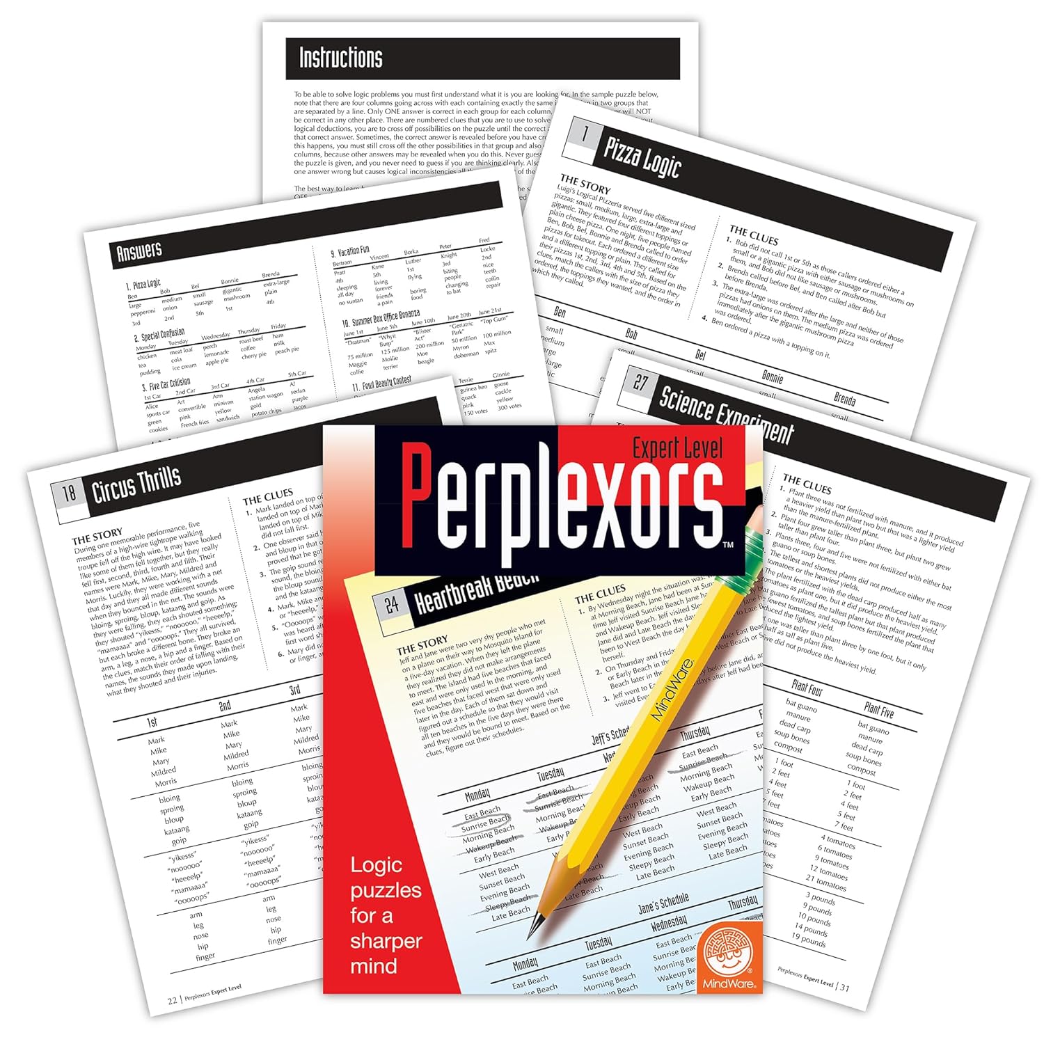 MindWare Perplexors Expert Level Logic Puzzle Book – Deductive Reasoning Puzzles for Kids and Adults, Grades 9-12, 46 Puzzles with Solutions