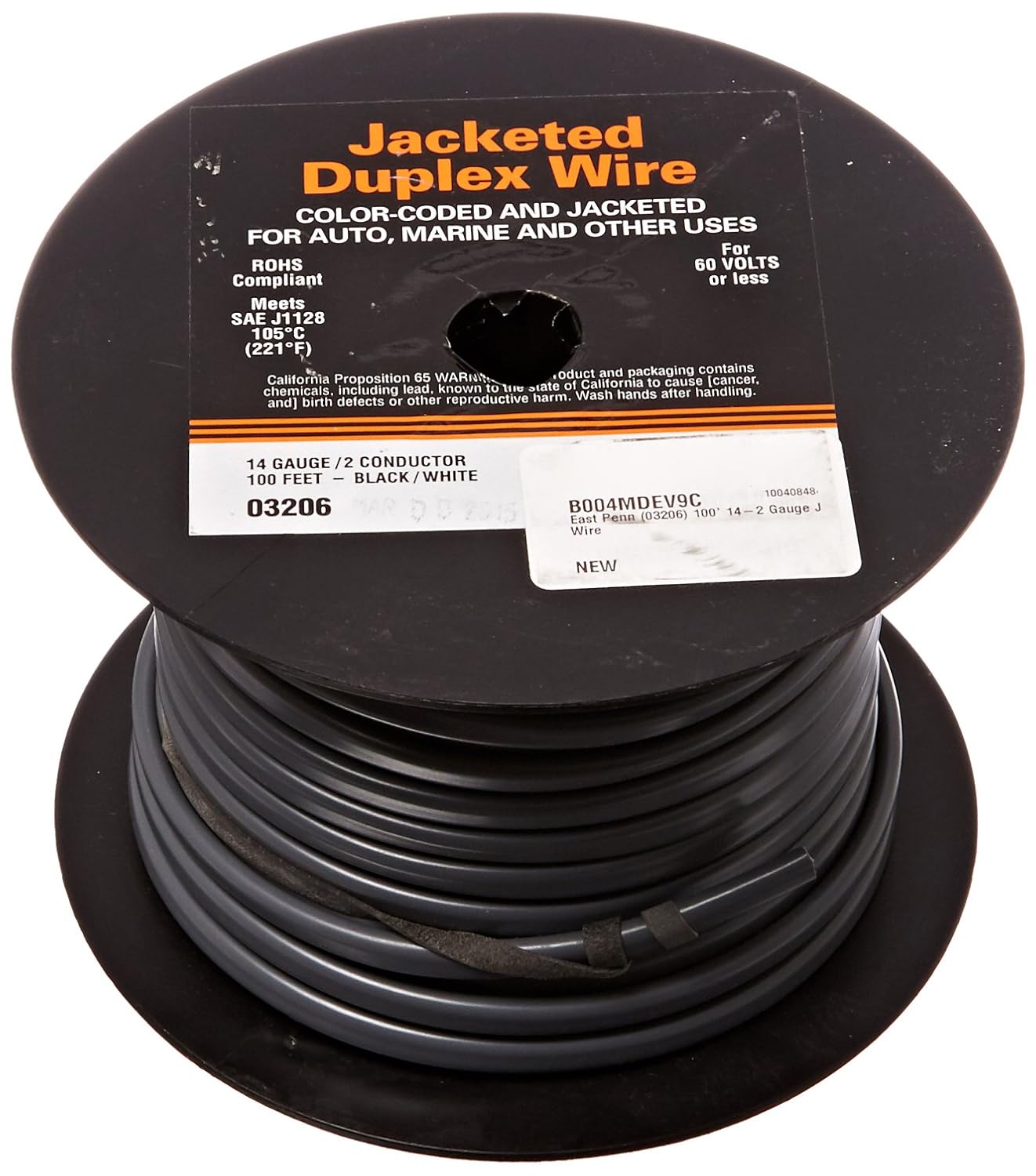 East Penn Deka (03206) 100' 14-2 Gauge Jacketed Wire,Black