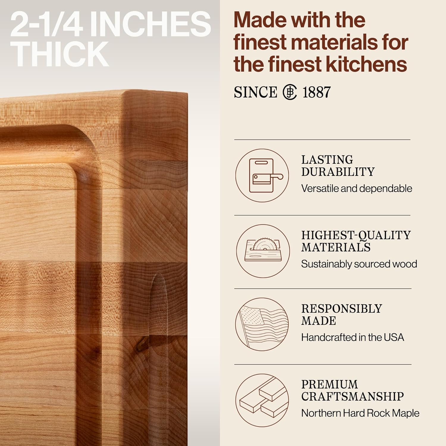 Made for Life: Available in 4 different sizes for your serving and charcuterie board needs, this large wooden cutting board features a 2.25-inch thickness and an edge-grain construction.
